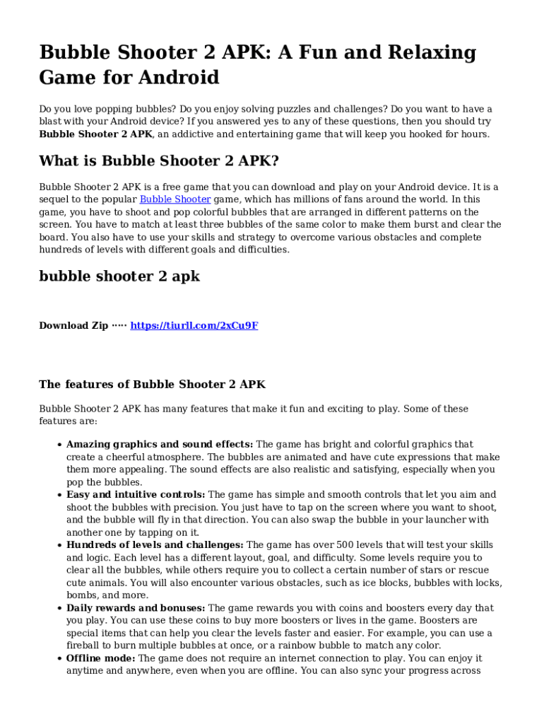 Bubble Shooter 2 APK: A Fun and Relaxing Game for Android Do you love popping bubbles? Do you enjoy solving puzzles and challenges? Do you want to have a blast with your Android device? If you answered
