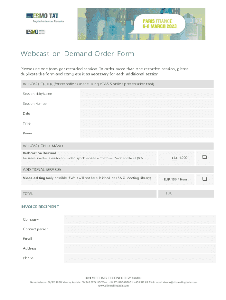 Please use one form per recorded session. To order more than one recorded session, please