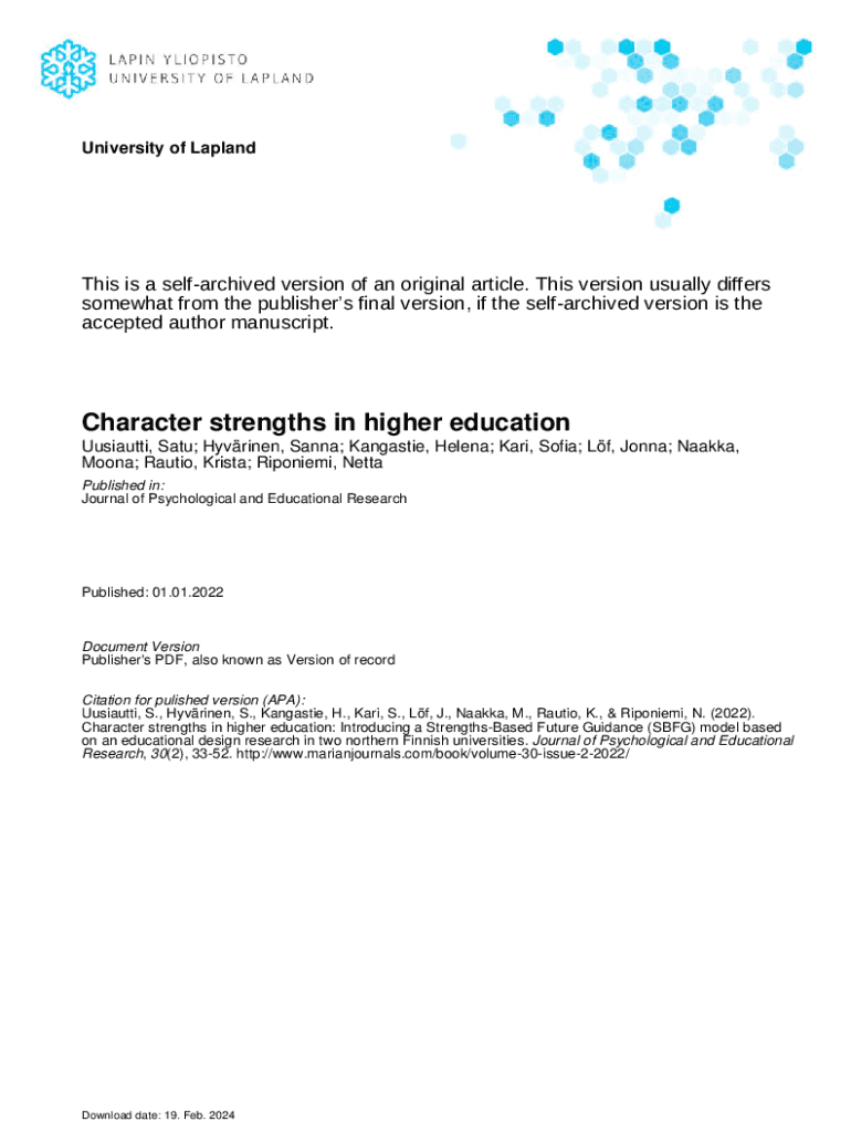 University of LaplandThis is a selfarchived version of an original article. This version usually differs somewhat from the publishers final version, if the selfarchived version is the accepted author