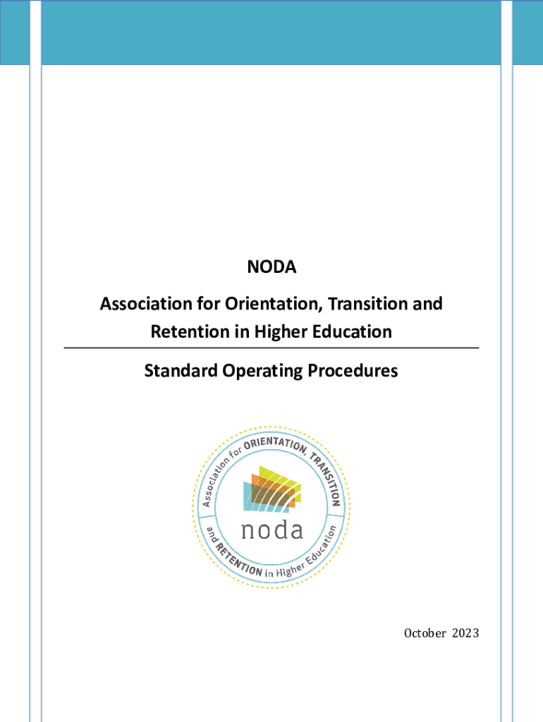 NODA Association for Orientation, Transition and Retention in Higher Education Standard Operating ProceduresOctober 2023Table of Contents Contents Guidelines for Sustainability and Practices4Conflict
