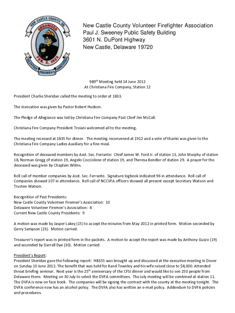 New Castle, Delaware 19720989th Meeting held 14 June 2012