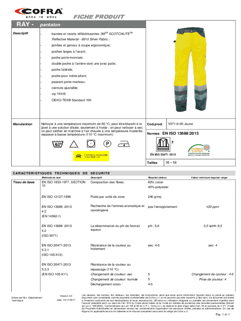 FICHE PRODUITRAY Descriptifpantalon bandes et inserts rflchissantes 3MTM SCOTCHLITETM Reflective Material 8910 Silver Fabric ;Manutentionjambes et genoux coupe ergonomique;poches larges lavant;poche