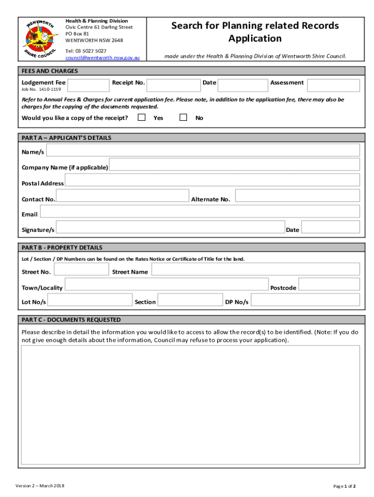 Health & Planning Division Civic Centre 61 Darling Street PO Box 81 WENTWORTH NSW 2648Search for Planning related Records ApplicationTel: 03 5027 5027 council@wentworth.nsw.gov.aumade under the Health