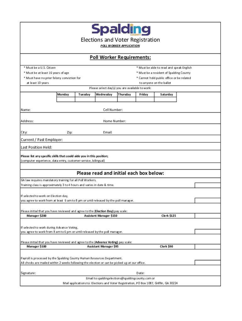 Elections and Voter Registration POLLWORKERAPPLICATIONPollWorkerRequirements: * Must be a U.S. Citizen * Must be at least 16 years of age * Must have no prior felony conviction for at least 10 years