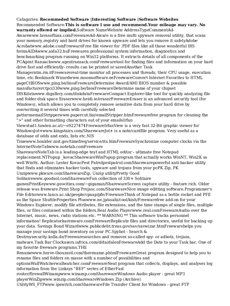 Catagories: Recommeded Software |Interesting Software |Software Websites Recommended Software:This is software I use and recommend.Your mileage may vary. No warranty offered or implied.Software NameWebsite