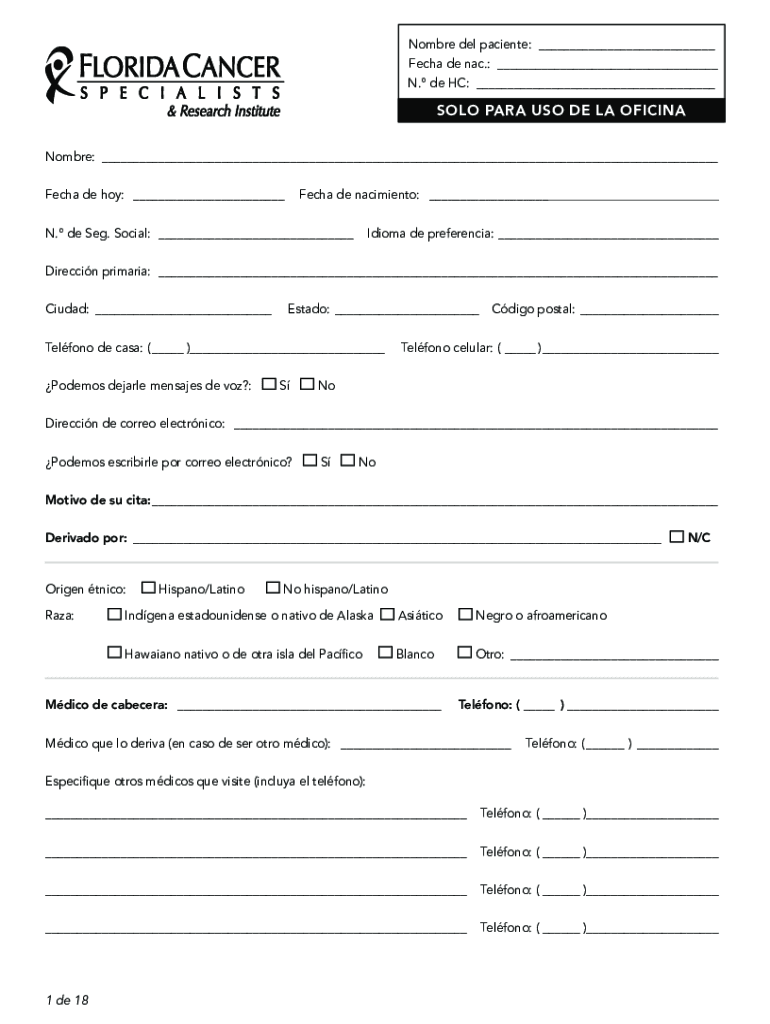 Nombre del paciente: ___ Fecha de nac.: ___ N. de HC: ___ ___SOLO PARA USO DE LA OFICINANombre: ___Fecha de hoy: ___Fecha de nacimiento: ___ ___N. de Seg. Social: ___Idioma de preferencia: ___Direccin