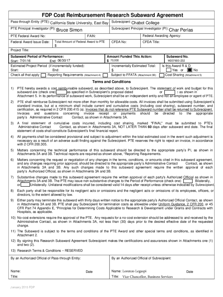Get the free FDP Foreign Cost Reimbursement Subaward