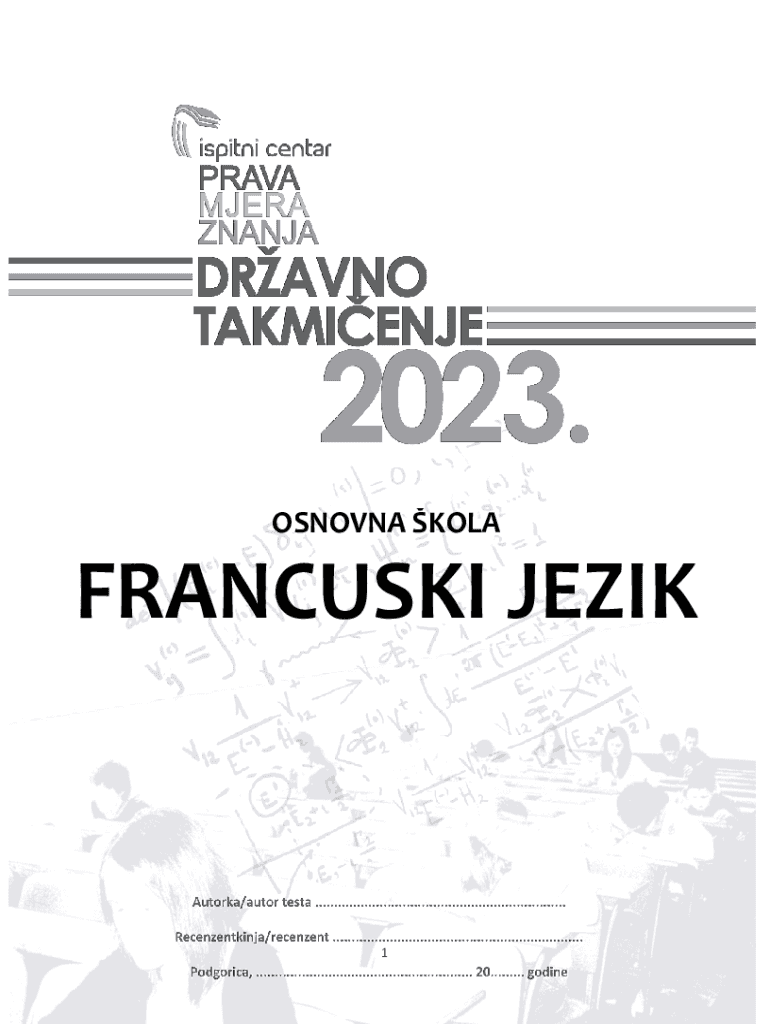 OSNOVNA KOLAFRANCUSKI JEZIK12Test iz francuskog jezika sastoji se od etiri dijela.Broj bodova Sluanje20itanje25Gramatika i leksika25Pisanje30Vrijeme rjeavanja testa je 90 minuta.Tokom rada se moe