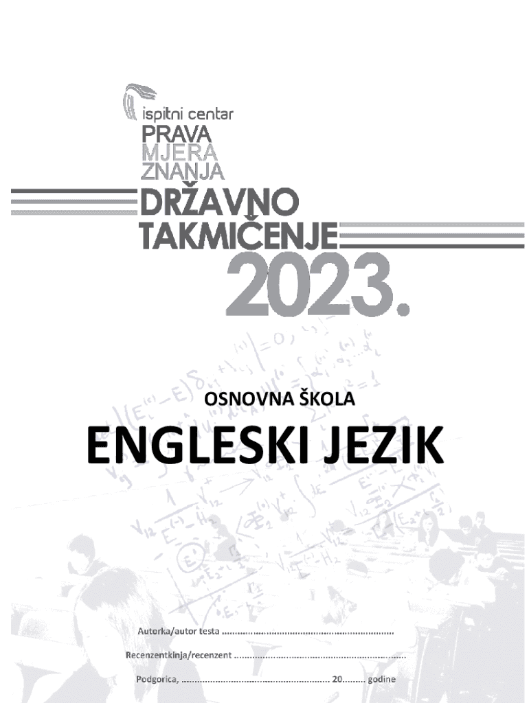 OSNOVNA KOLAENGLESKI JEZIKTest iz engleskog jezika sastoji se od etiri dijela. Broj bodova Sluanje20itanje25Leksika i gramatika25Pisanje30Ostvareni broj bodovaVrijeme rjeavanja testa je 90 minuta.