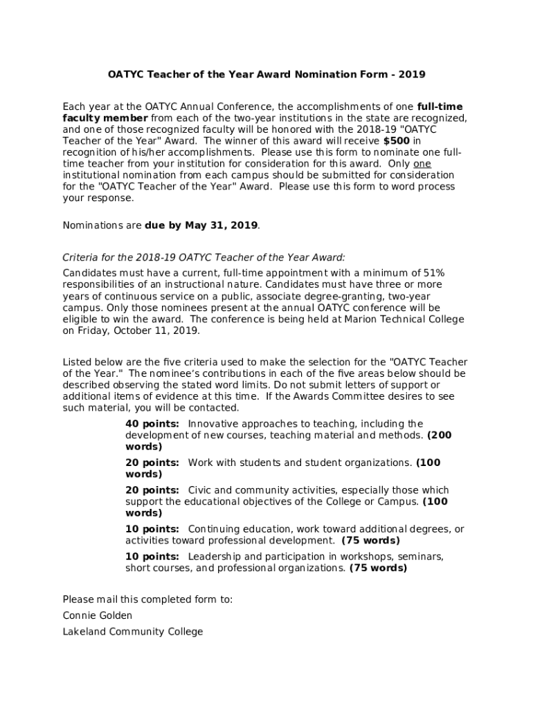 The Dolly Cohen Award - All-University Faculty Awards is a document which can be completed and signed for specified needs. Next, it is furnished to the exact addressee to provide specific details of certain kinds. The completion and signing can be done manually or using an appropriate application like PDFfiller. These services help to complete any PDF or Word file without printing them out. While doing that, you can edit its appearance depending on your needs and put a valid electronic signature. Upon finishing, the user sends the Dolly Cohen Award - All-University Faculty Awards to the recipient or several of them by email or fax. PDFfiller has got a feature and options that make your Word form printable. It includes various settings for printing out appearance. It does no matter how you will file a form - physically or by email - it will always look well-designed and firm. In order not to create a new document from scratch over and over, make the original Word file as a template. Later, you will have a customizable sample.