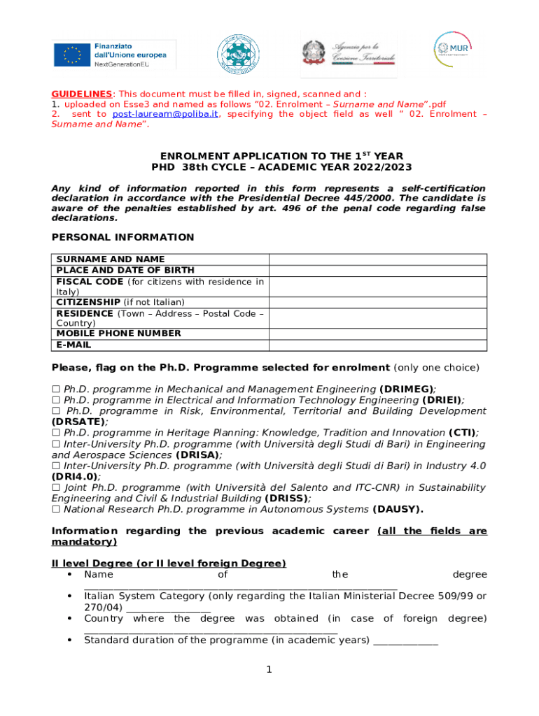 Instructions for the form NOTICE FOR ADMITTED CANDIDATES ENROLMENT TO ...