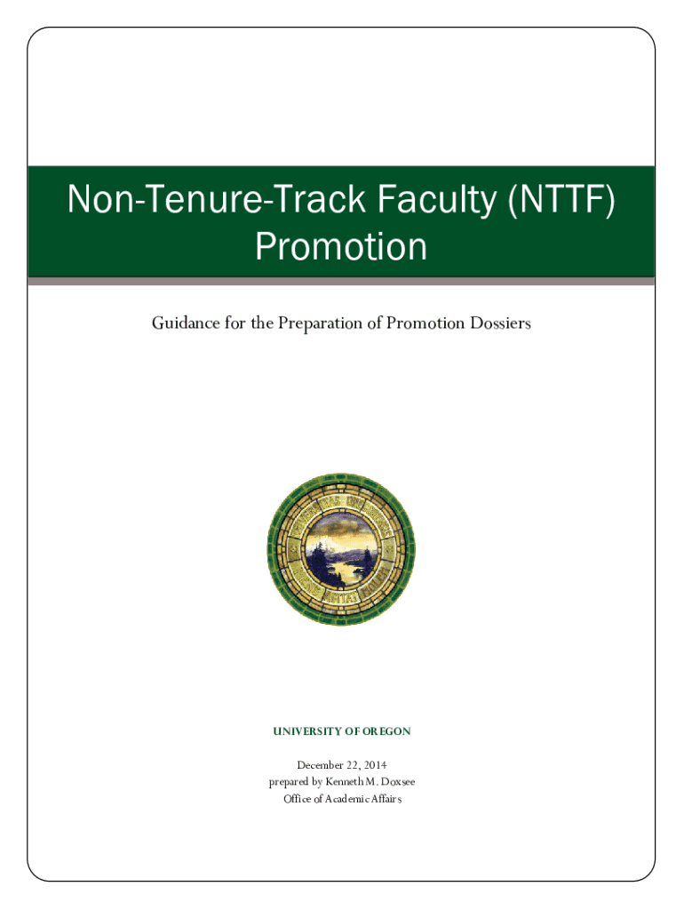 NonTenureTrack Faculty (NTTF) Promotion Guidance for the Preparation of Promotion DossiersUNIVERSITY OF OREGON December 22, 2014 prepared by Kenneth M. Doxsee Office of Academic AffairsNonTenureTrack