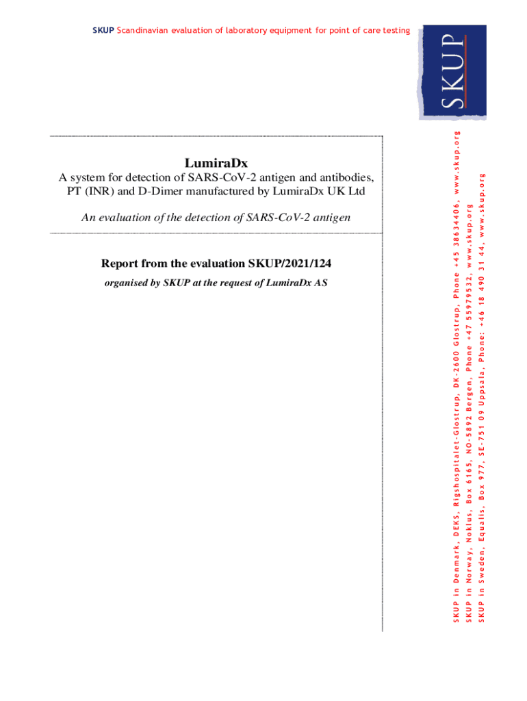 An evaluation of the detection of SARSCoV2 antigenReport from the evaluation SKUP/2021/124 organised by SKUP at the request of LumiraDx ASSKUP in Sweden, Equalis, Box 977, SE751 09 Uppsala, Phone: