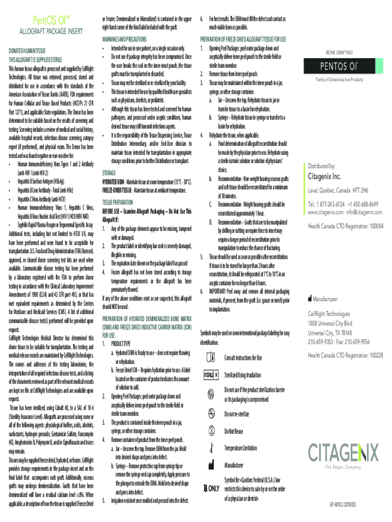 PentOSOIALLOGRAFT PACKAGE INSERT DONATED HUMAN TISSUE THIS ALLOGRAFT IS SUPPLIED STERILEThis human tissue allograft is processed and supplied by CellRight Technologies. All tissue was retrieved, processed,
