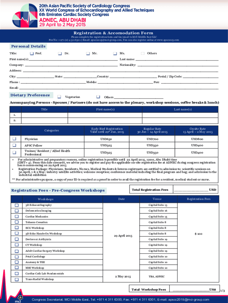 20th Asian Pacific Society of Cardiology Congress XX World Congress of Echocardiography and Allied Techniques 6th Emirates Cardiac Society CongressADNEC, ABU DHABI 29 April to 2 May 2015Registration