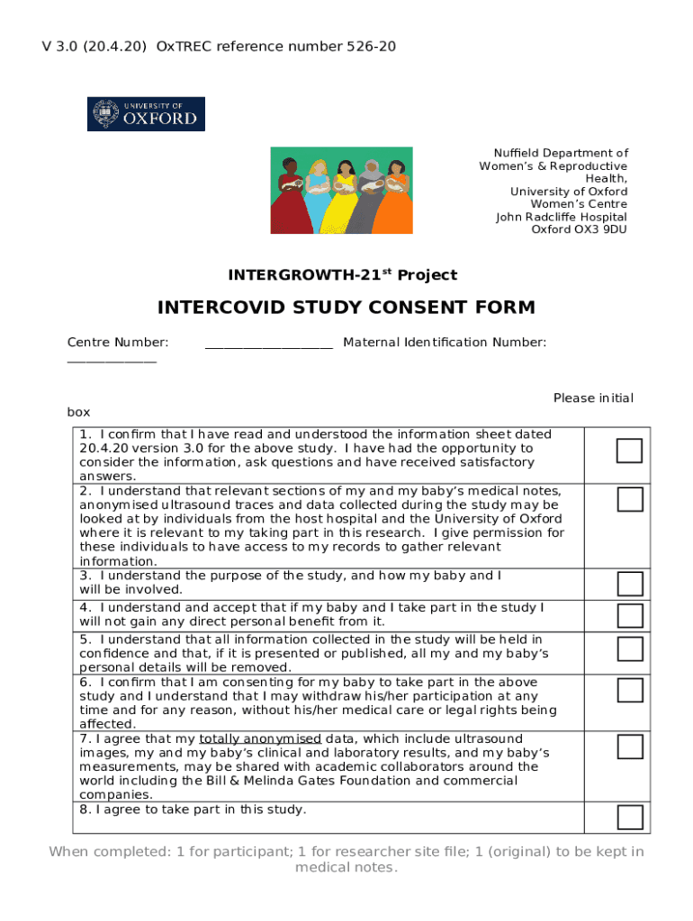 Instructions for the Nuffield Department of Women's & Reproductive Health form