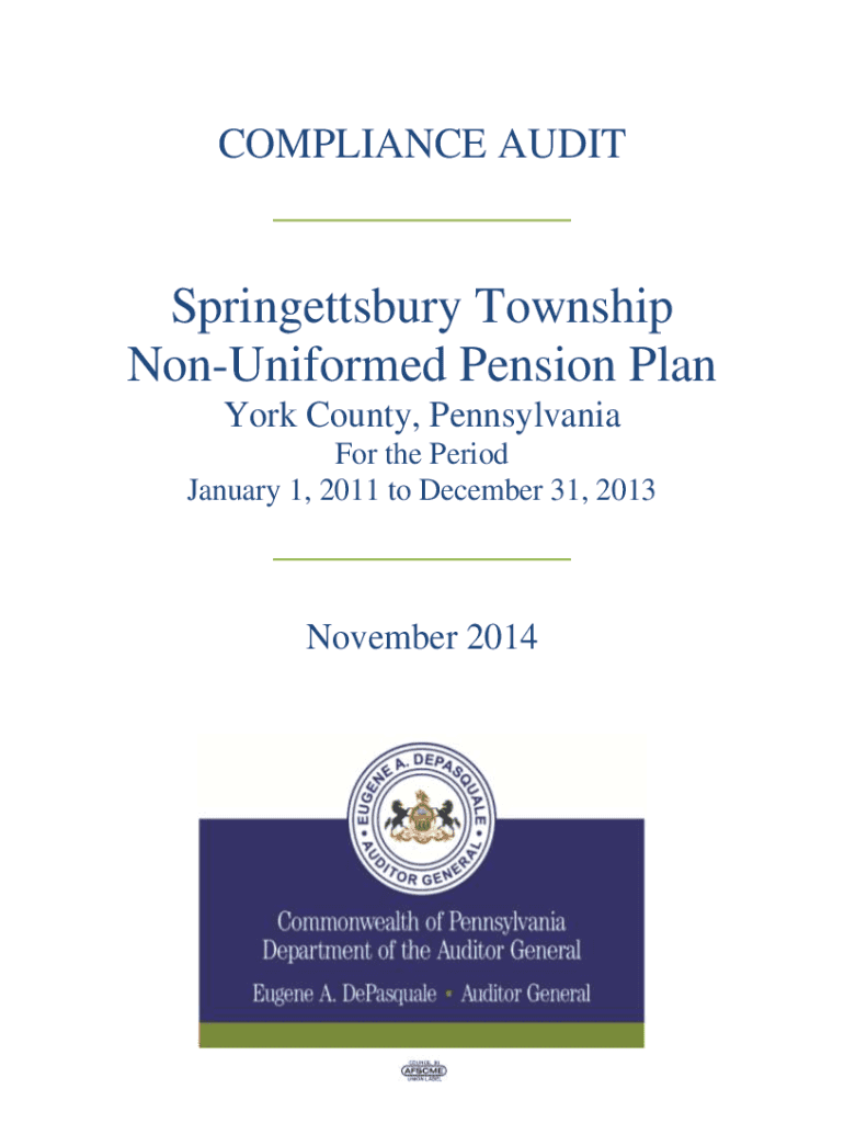COMPLIANCE AUDIT___ Springettsbury Township NonUniformed Pension Plan York County, Pennsylvania For the Period January 1, 2011 to December 31, 2013___ November 2014Board of Township Supervisors Springettsbury
