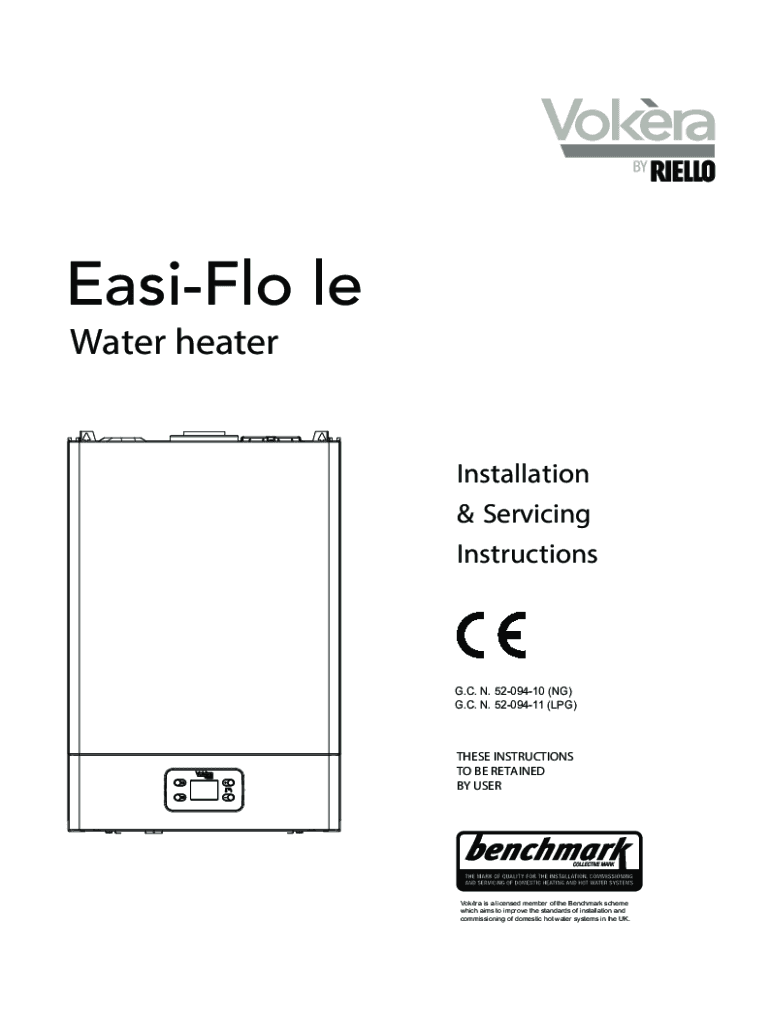 EasiFlo le Water heaterInstallation & Servicing InstructionsG.C. N. 5209410 (NG) G.C. N. 5209411 (LPG)THESE INSTRUCTIONS TO BE RETAINED BY USERVokra is a licensed member of the Benchmark scheme which