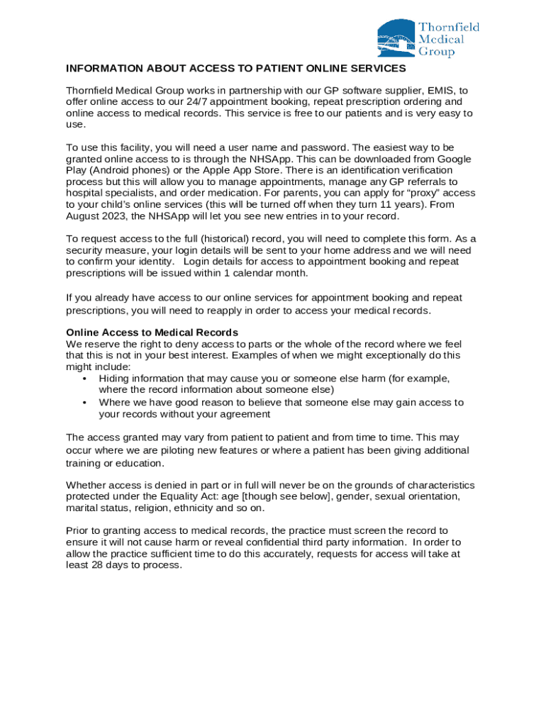 The Application For Access To Patient Online Services is a fillable form in MS Word extension which can be completed and signed for specific reasons. Next, it is provided to the relevant addressee to provide specific info of certain kinds. The completion and signing is able manually or via a suitable solution like PDFfiller. Such applications help to submit any PDF or Word file without printing out. While doing that, you can edit it according to the needs you have and put a valid e-signature. Once finished, the user sends the Application For Access To Patient Online Services to the recipient or several ones by email and even fax. PDFfiller is known for a feature and options that make your template printable. It provides a variety of options when printing out. No matter, how you'll send a form after filling it out - physically or by email - it will always look neat and firm. To not to create a new editable template from the beginning all the time, make the original form into a template. Later, you will have a customizable sample.