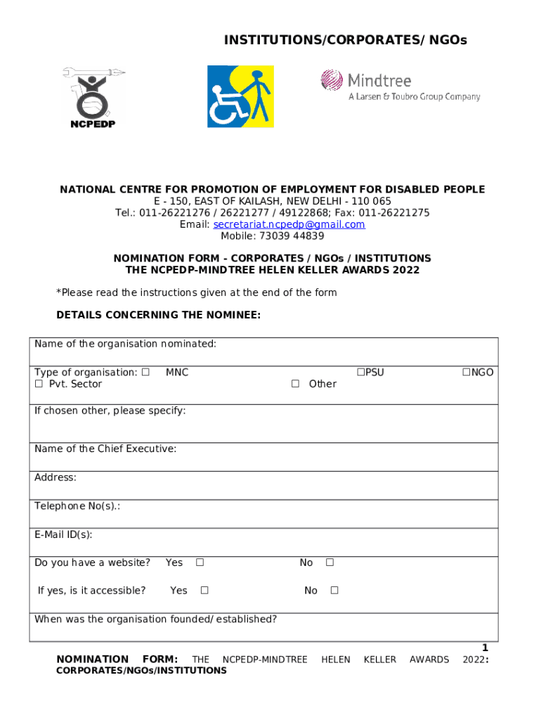 NOMINATION - CORPORATES / NGOs / INSTITUTIONS template instructions