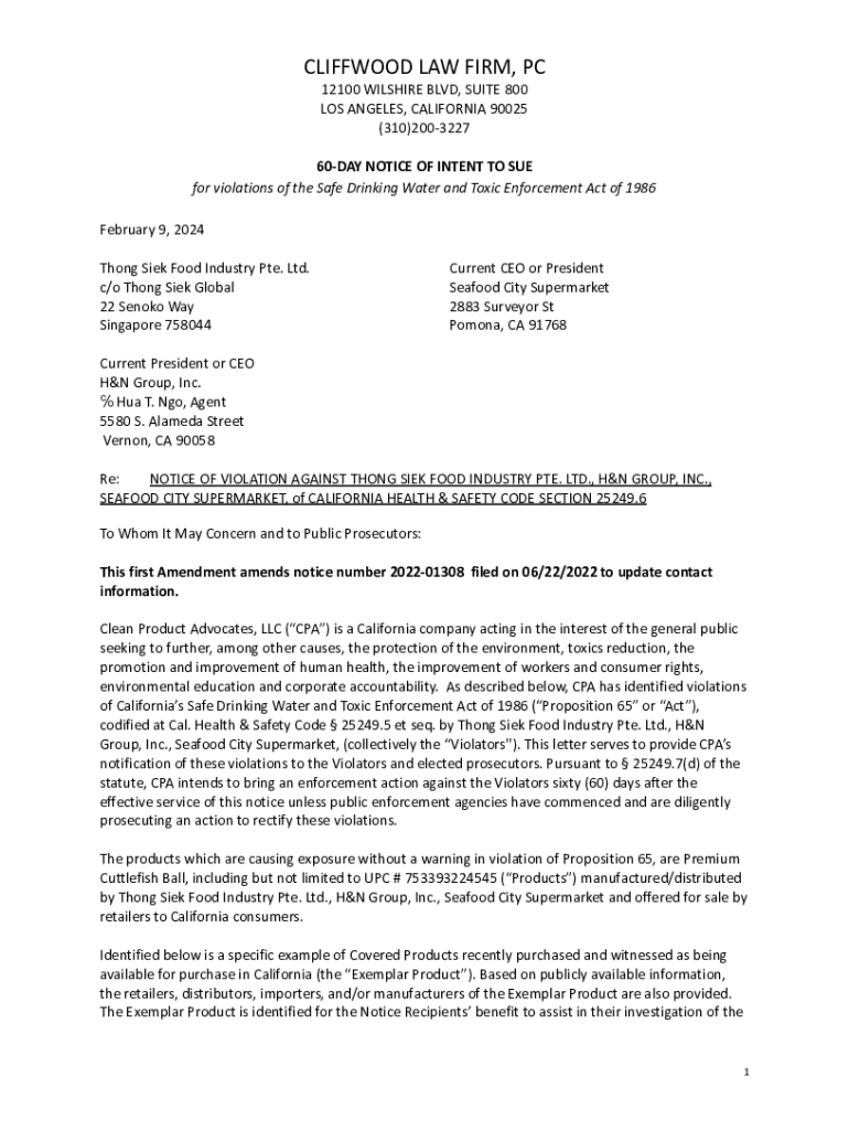 60DAY NOTICE OF INTENT TO SUE