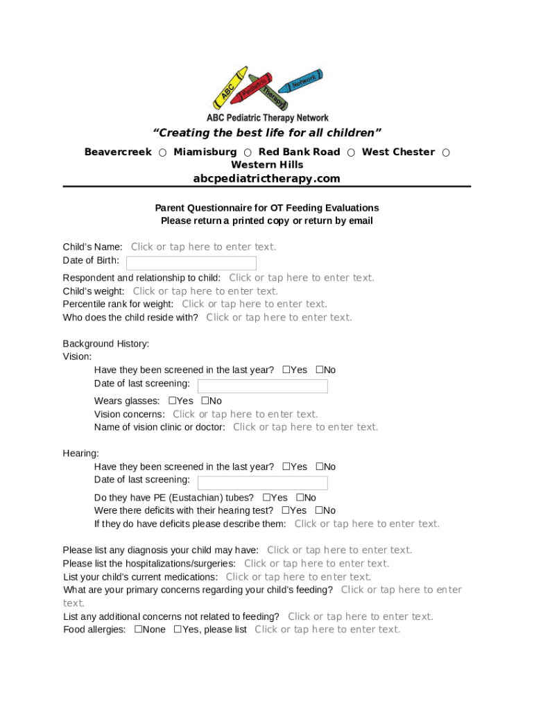 Frequently asked questions about the form Parent-Interview-for-OT-Feeding-Evaluation- ...