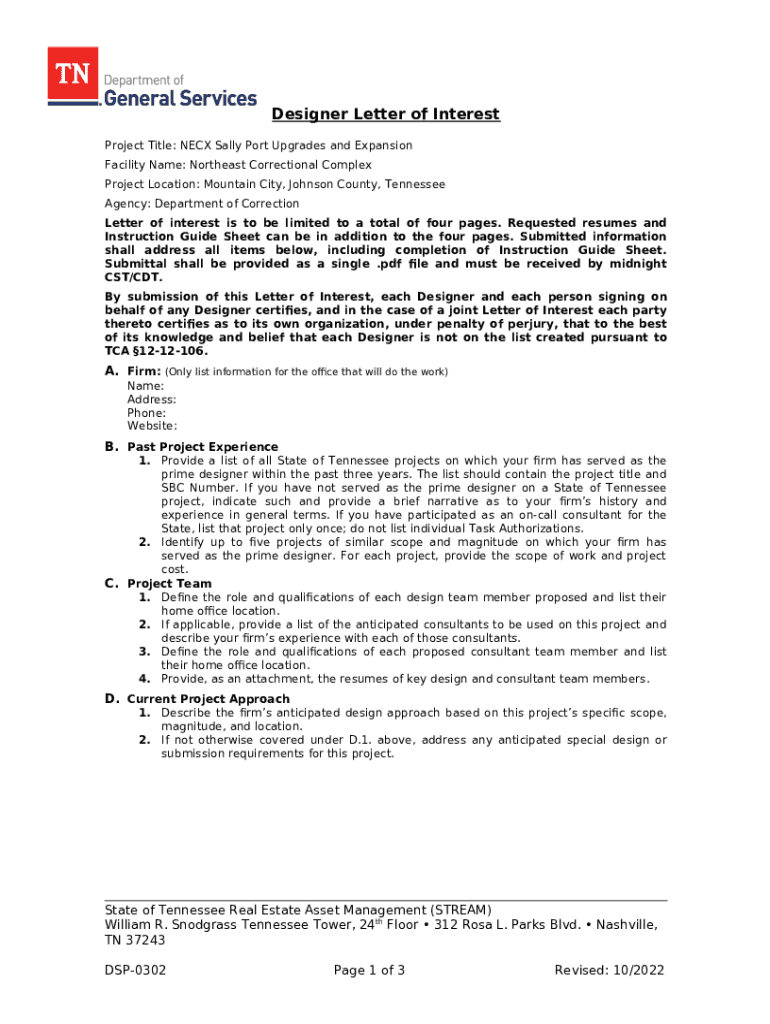 How to fill The Northeast... - Tennessee Department of Correction word template