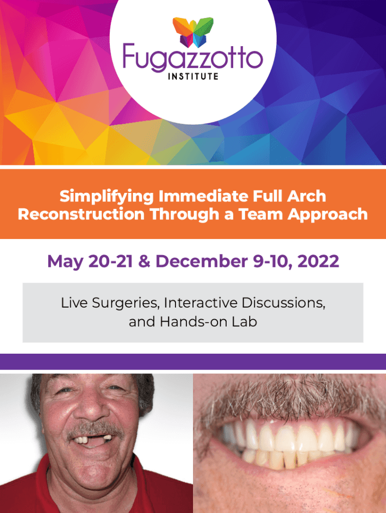 Simplifying Immediate Full Arch Reconstruction Through a Team ApproachMay 2021 & December 910, 2022 Live Surgeries, Interactive Discussions, and Handson LabSimplifying Immediate Full Arch Reconstruction