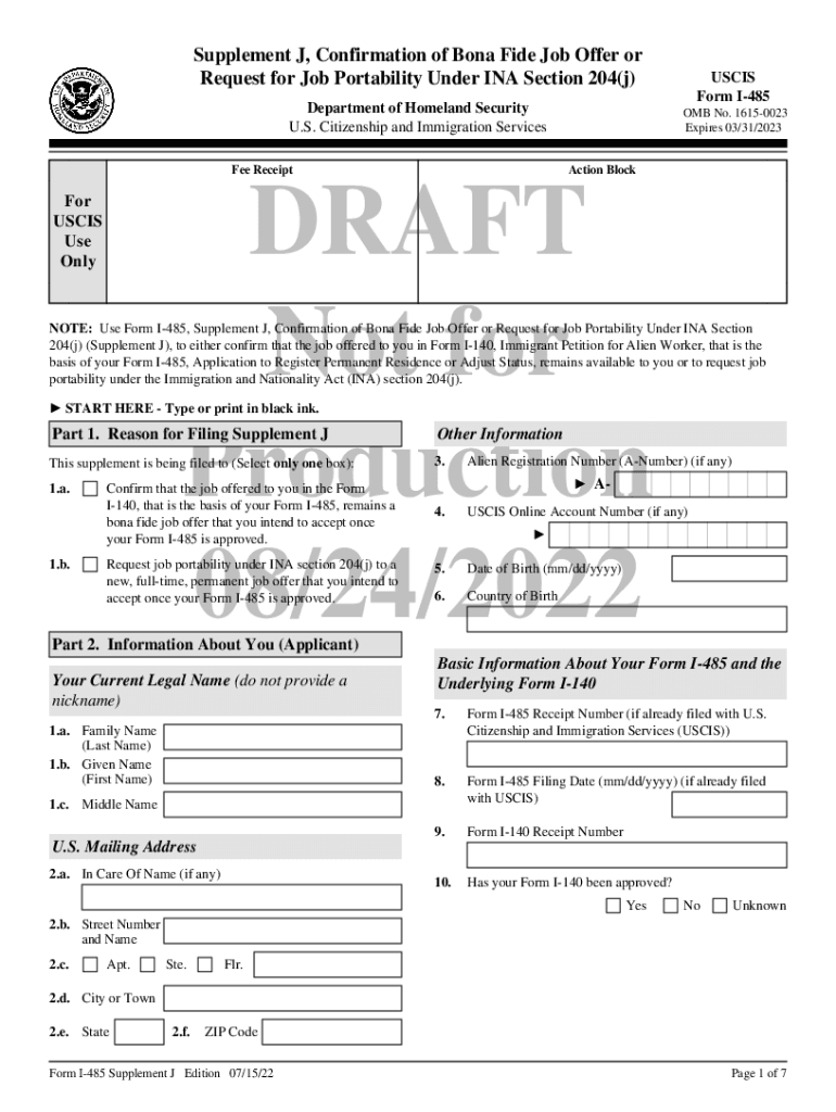 Get the free Form I-485 Supplement J, Confirmation of Bona Fide Offer ...