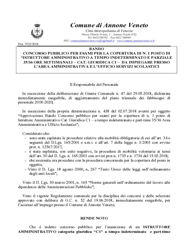 Comune di Annone Veneto Citt Metropolitana di Venezia Piazza Vittorio Veneto, 1 Annone Veneto (VE) Tel. 0422/769702 Fax 0422 769949 PEC: comuneannoneveneto.ve@legalmail.it www.comune.annoneveneto.ve.it