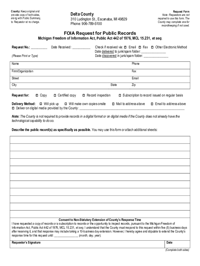 County: Keep original and provide copy of both sides, along with Public Summary, to Requestor at no charge.Request Form Note: Requestors are not required to use this form. The County may complete