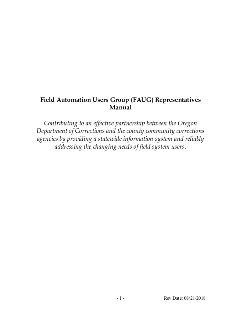 Field Automation Users Group (FAUG) Representatives Manual Contributing to an effective partnership between the Oregon Department of Corrections and the county community corrections agencies by providing