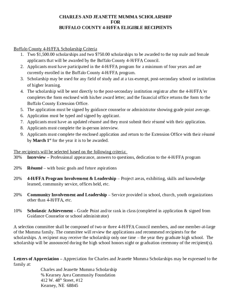 How to fill CHARLES AND JEANETTE MUMMA SCHOLARSHIP ... - extension unl word template