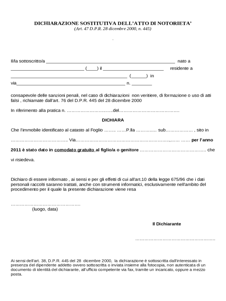 Template Allegato C - Dichiarazione sostitutiva dell'atto di notoriet instructions