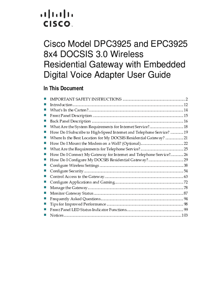 Get the free Cisco Systems Cisco Wireless Residential Gateway DPC3925 ...