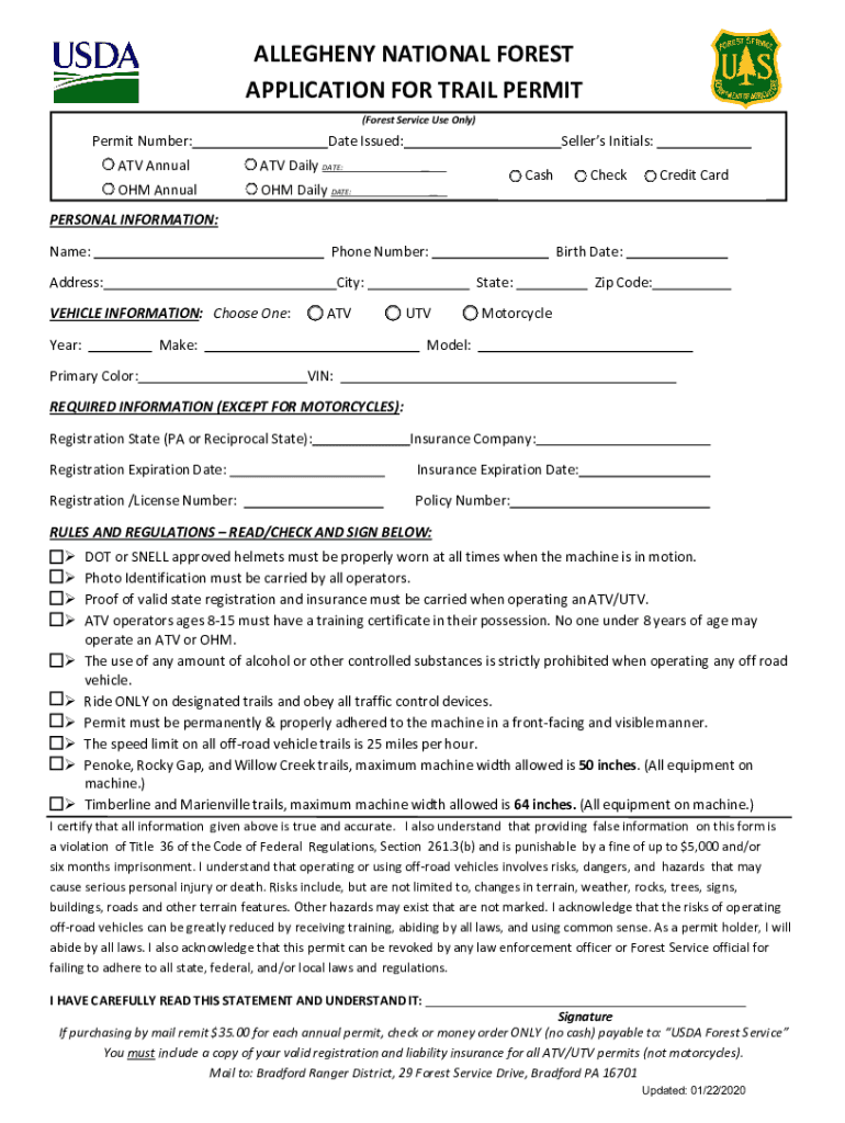 Get the free Allegheny National Forest Application for Trail Permit