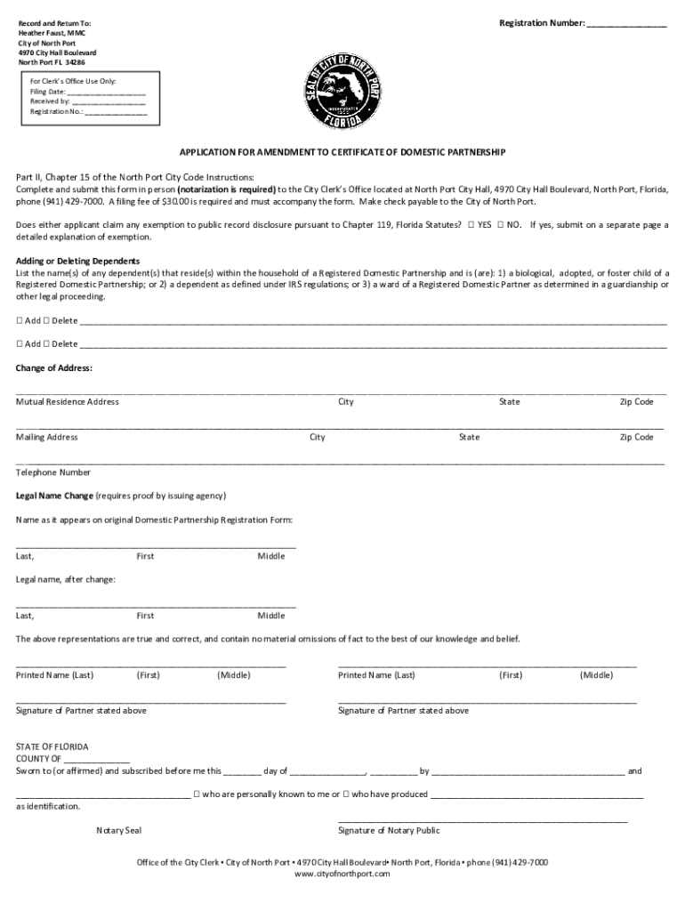Registration Number: ___Record and Return To: Heather Faust, MMC City of North Port 4970 City Hall Boulevard North Port FL 34286 For Clerks Office Use Only: Filing Date: ___ Received by: ___ Registration