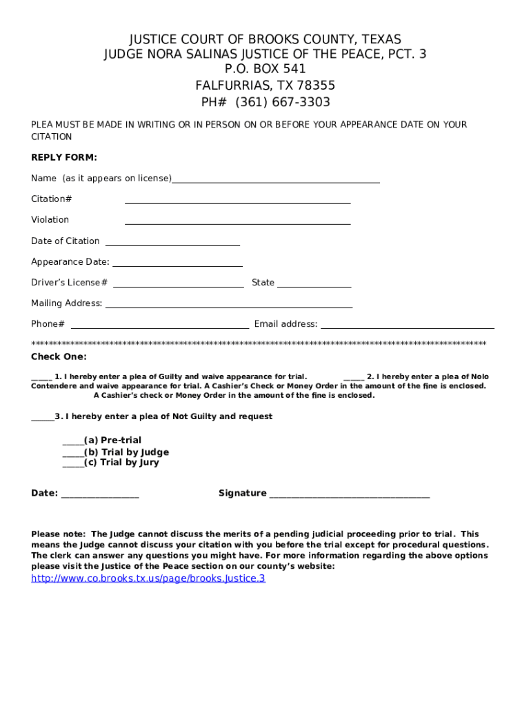 What is non commercial plea s-fines - Brooks County, Texas Form?