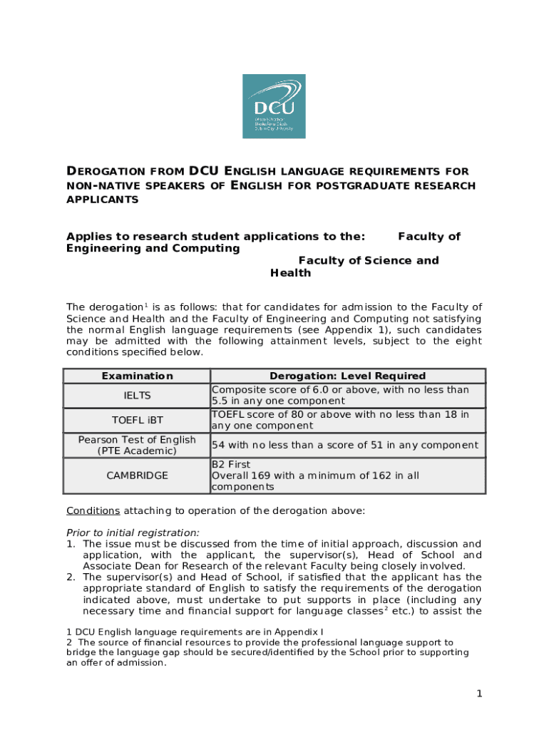 The English Language Requirements for Non-Native Speakers ... is a fillable form in MS Word extension you can get filled-out and signed for specified purpose. Next, it is provided to the actual addressee in order to provide certain information of certain kinds. The completion and signing may be done manually in hard copy or using a trusted tool e. g. PDFfiller. Such tools help to submit any PDF or Word file without printing out. While doing that, you can customize its appearance according to your needs and put a valid electronic signature. Once you're good, the user ought to send the English Language Requirements for Non-Native Speakers ... to the respective recipient or several ones by mail and also fax. PDFfiller offers a feature and options that make your Word form printable. It has a variety of options for printing out appearance. No matter, how you send a form - in hard copy or by email - it will always look well-designed and clear. To not to create a new editable template from the beginning again and again, turn the original form as a template. Later, you will have a rewritable sample.