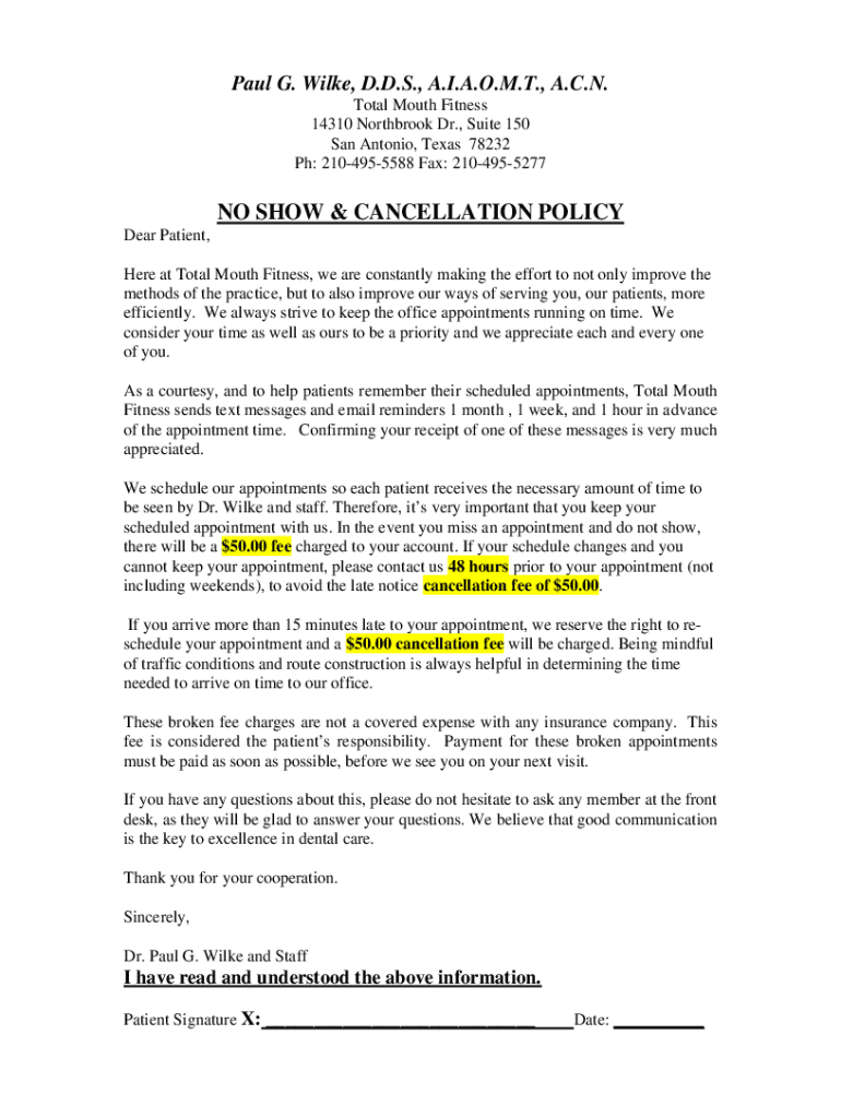 pH: 2104955588 Fax: 2104955277NO SHOW & CANCELLATION POLICY