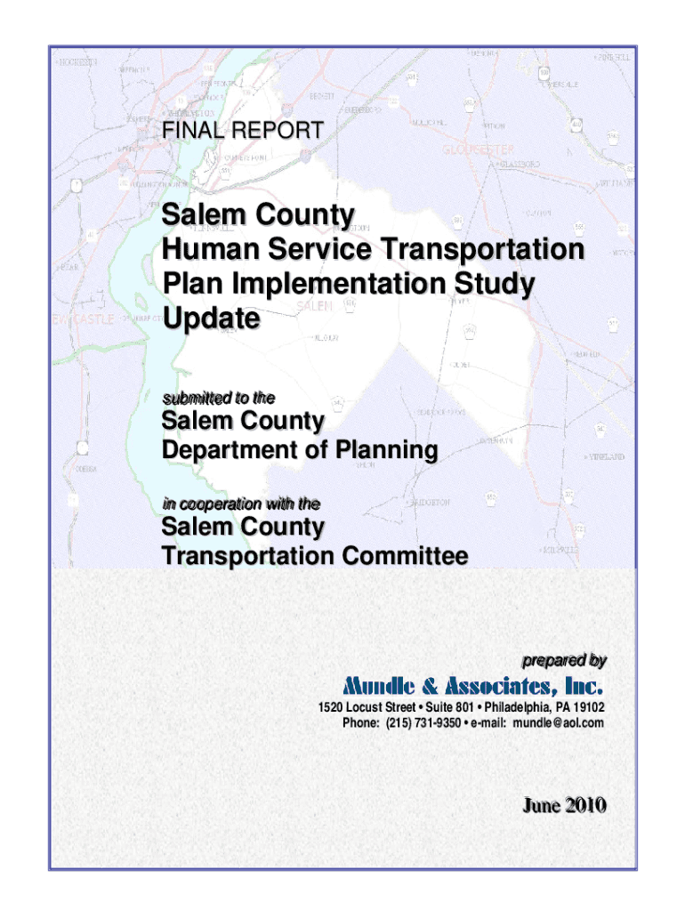FINAL REPORTSalem County Human Service Transportation Plan Implementation Study Update ssuubbm miitttteedd ttoo tthheeSalem County Department of Planning iinn ccooooppeerraattiioonn w wiitthh tthheeSalem