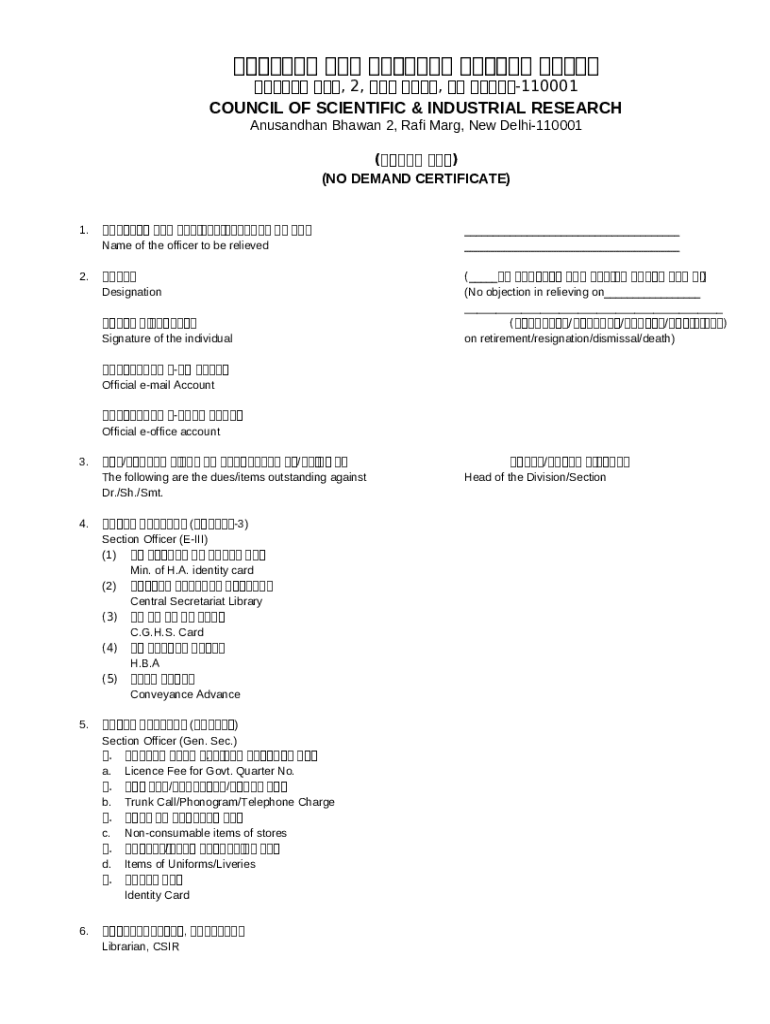 Instructions for the form No Demand CertificateCouncil of Scientific & Industrial ...