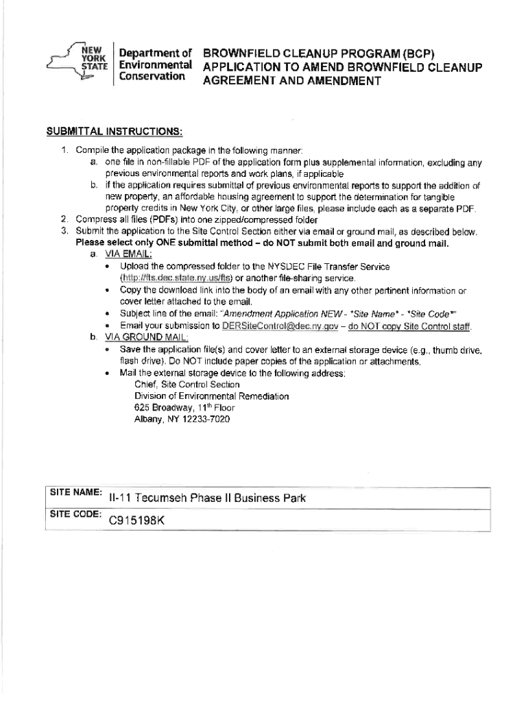 Environmental APPLICATION TO AMEND BROWNFIELD GLEANUP