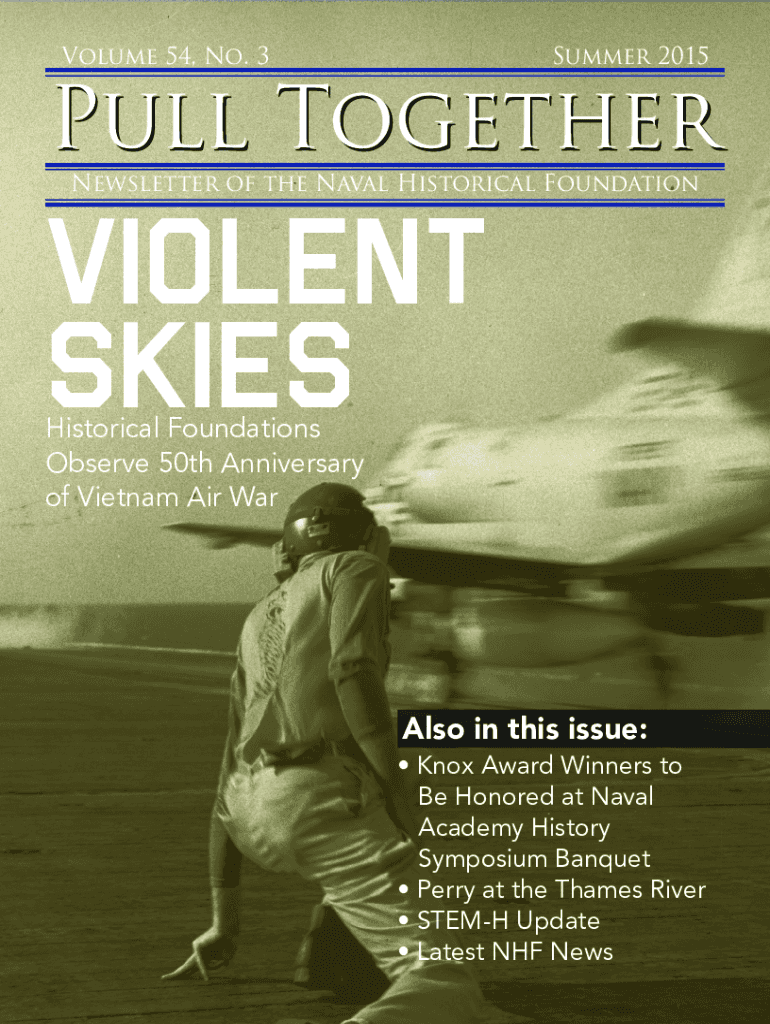 Volume 54, No. 3Summer 2015Pull Together Newsletter of the Naval Historical FoundationViolent Skies Historical Foundations Observe 50th Anniversary of Vietnam Air WarAlso in this issue: Knox Award