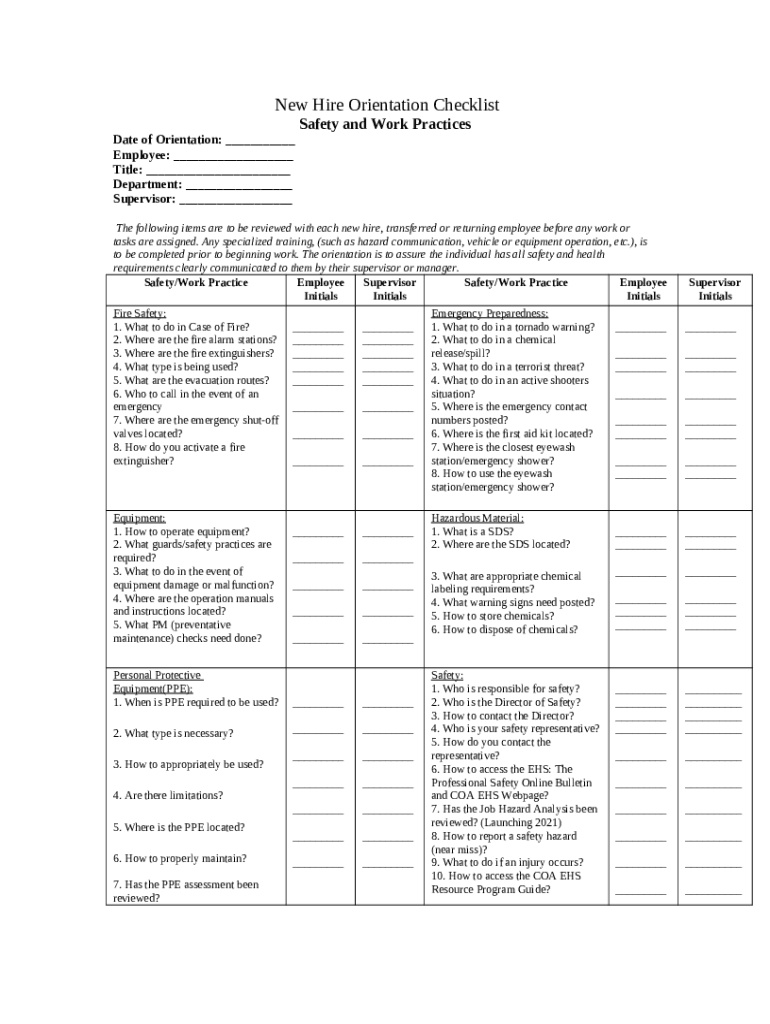 What is NEW HIRE ORIENTATION CHECKLIST Pre-Employment ... Form?