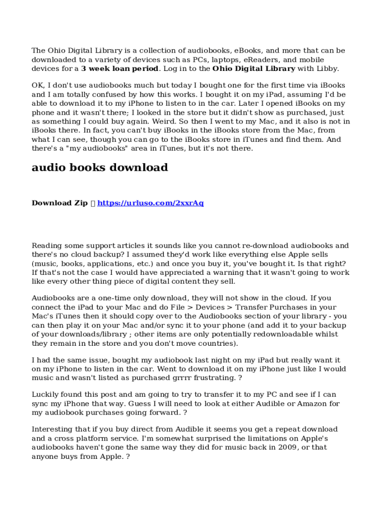 Audio Books Download is not the form you're looking for?Search for another form here.