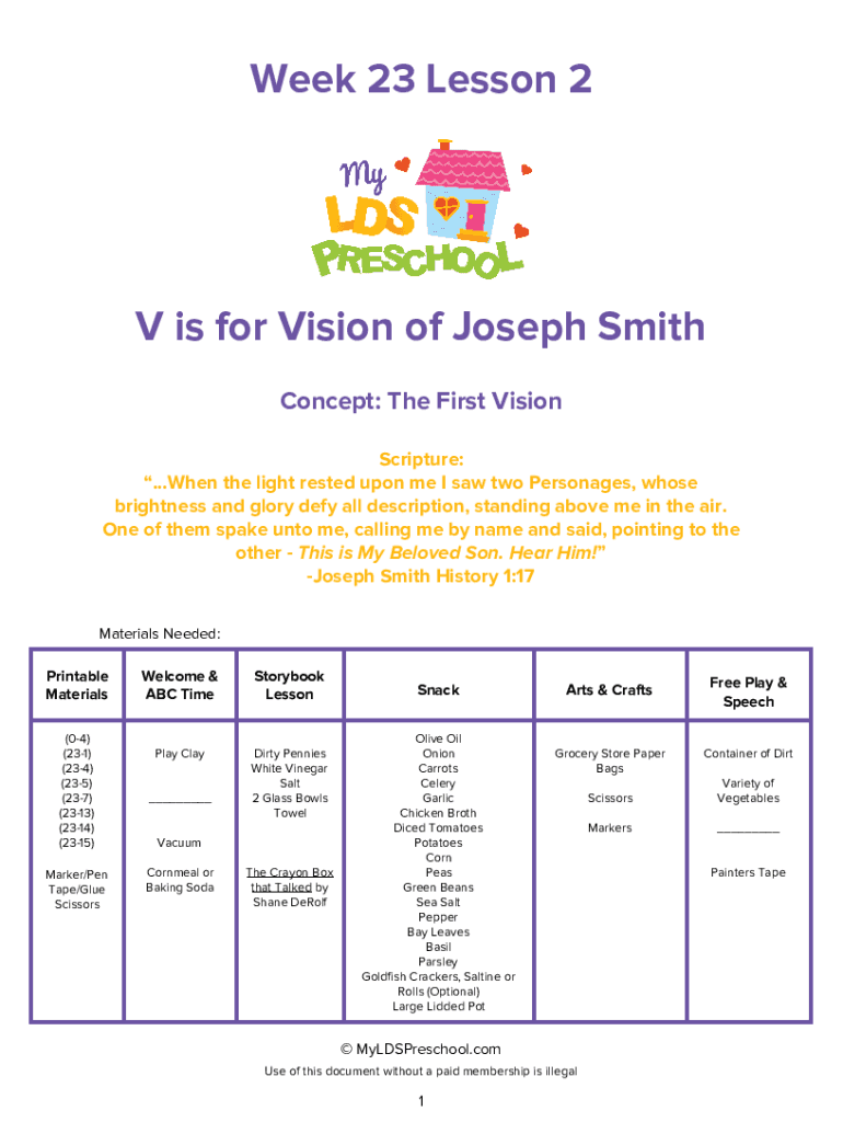 Get the free Week 23 Lesson 2 V is for Vision of Joseph Smith