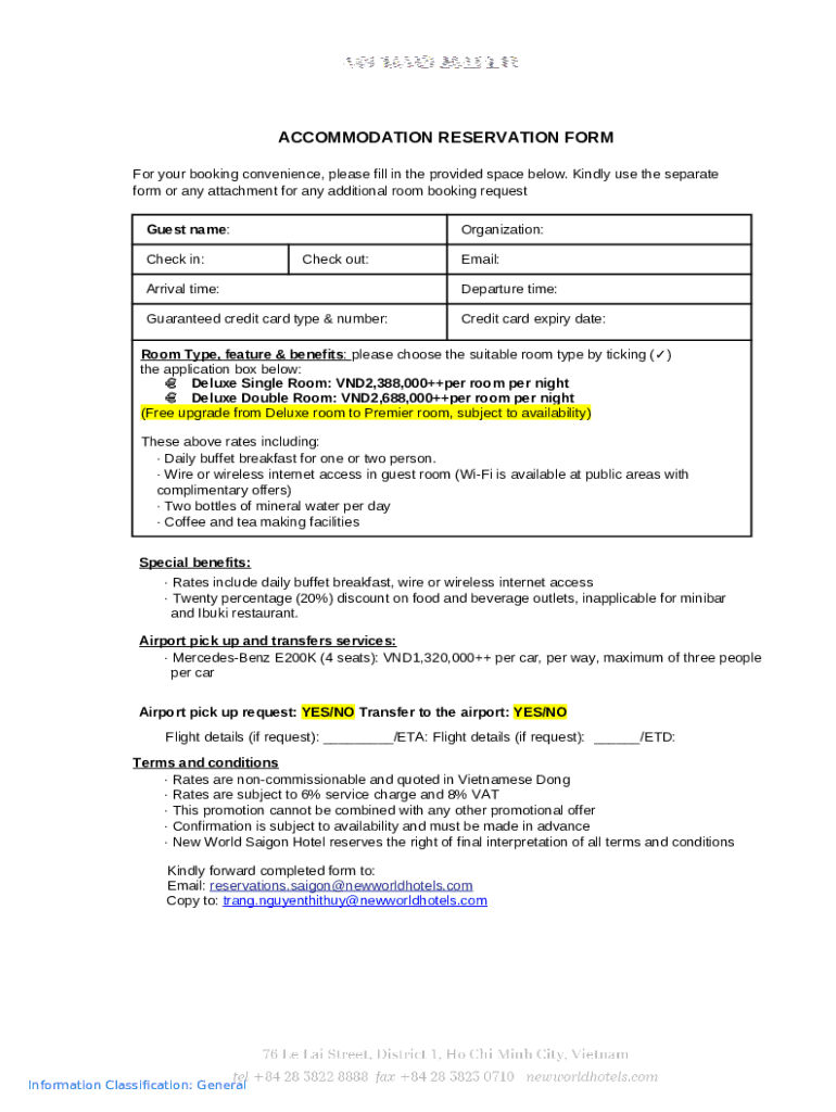 The New-WorldAccommodation-. ... is a Word document that should be submitted to the relevant address in order to provide specific information. It needs to be completed and signed, which can be done in hard copy, or using a certain solution like PDFfiller. It helps to fill out any PDF or Word document directly from your browser (no software requred), customize it depending on your requirements and put a legally-binding electronic signature. Once after completion, you can send the New-WorldAccommodation-. ... to the relevant person, or multiple ones via email or fax. The editable template is printable as well due to PDFfiller feature and options proposed for printing out adjustment. Both in digital and in hard copy, your form will have a clean and professional outlook. Also you can save it as the template to use it later, without creating a new file again. You need just to edit the ready form.