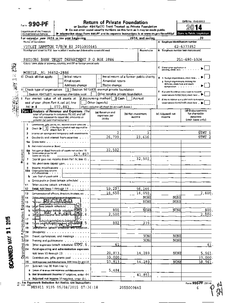 ..SlReturn of Private Foundation990PFFornOMB No 15450052or Section 4947(a)(1) Trust Treated as Private Foundation 2014^ Do not enter social secu rity numbers on this form as it may be made public.