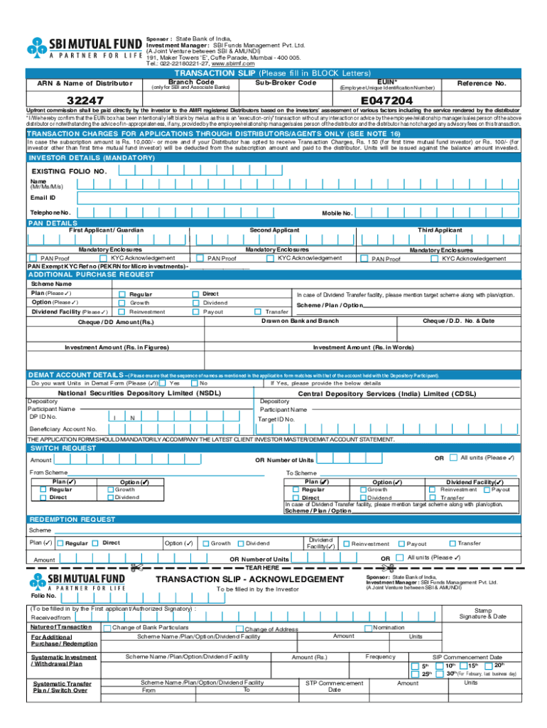Sponsor : State Bank of India, Investment Manager : SBI Funds Management Pvt. Ltd. (A Joint Venture between SBI & AMUNDI) 191, Maker Towers E, Cuffe Parade, Mumbai 400 005. Tel.: 0222218022127, www.sbimf.comTRANSACTION
